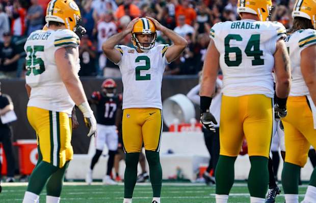 Until his 49-yard field goal with 1:58 left in overtime to give Green Bay a 25-22 win, Packers kicker Mason Crosby had an afternoon to forget in Cincinnati, and it wasn't much better for Bengals kicker Evan McPherson.